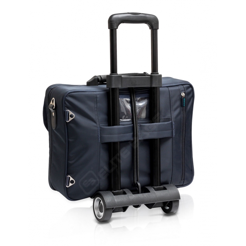 - Cremallera con cierre para candado. - 7 compartimentos extraíbles con frontal transparente. - Compartimento extraíble opaco. - Compartimento extraíble con separadores de velcro. - Compartimento isotérmico con 43 gomas elásticas para medicación. - Bolsa de rejilla. - 4 gomas para sujeción de material. - Miniclip. - Bolsa auxiliar para grandes volúmenes. - Espacio para objetos personales. - Bandolera, asa, tirantes de mochila ocultos y banda para trolley.