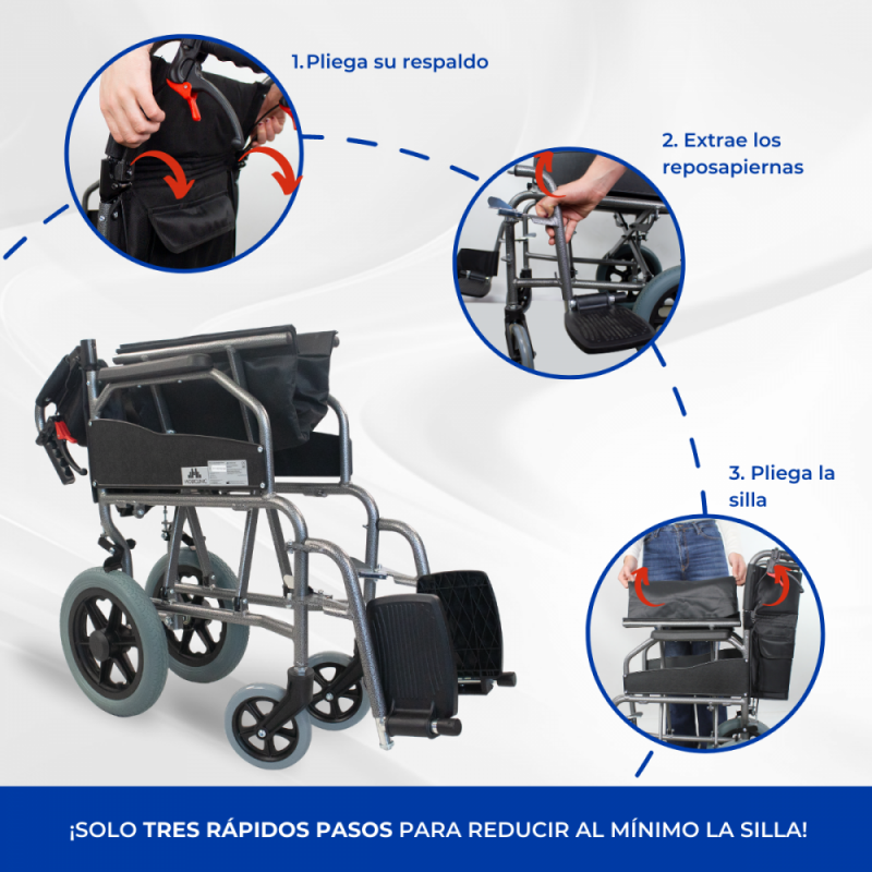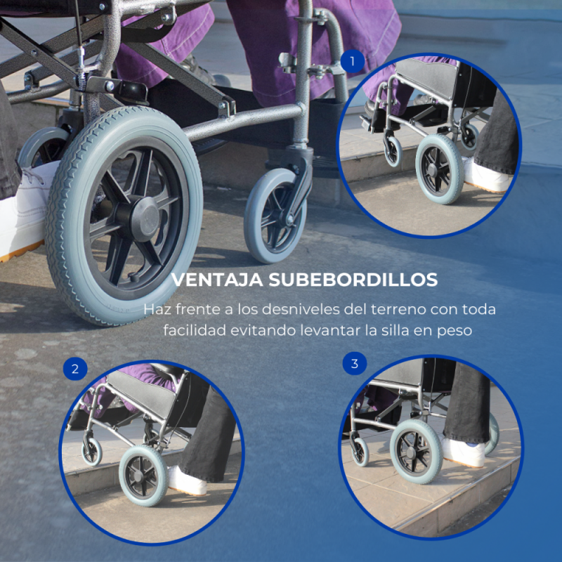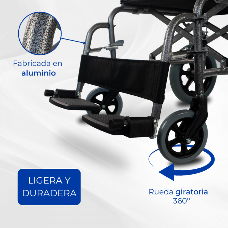 - Su ligereza: es una silla ligera y muy manejable tanto para el usuario que la utilice como para el acompañante, gracias a su material de fabricación