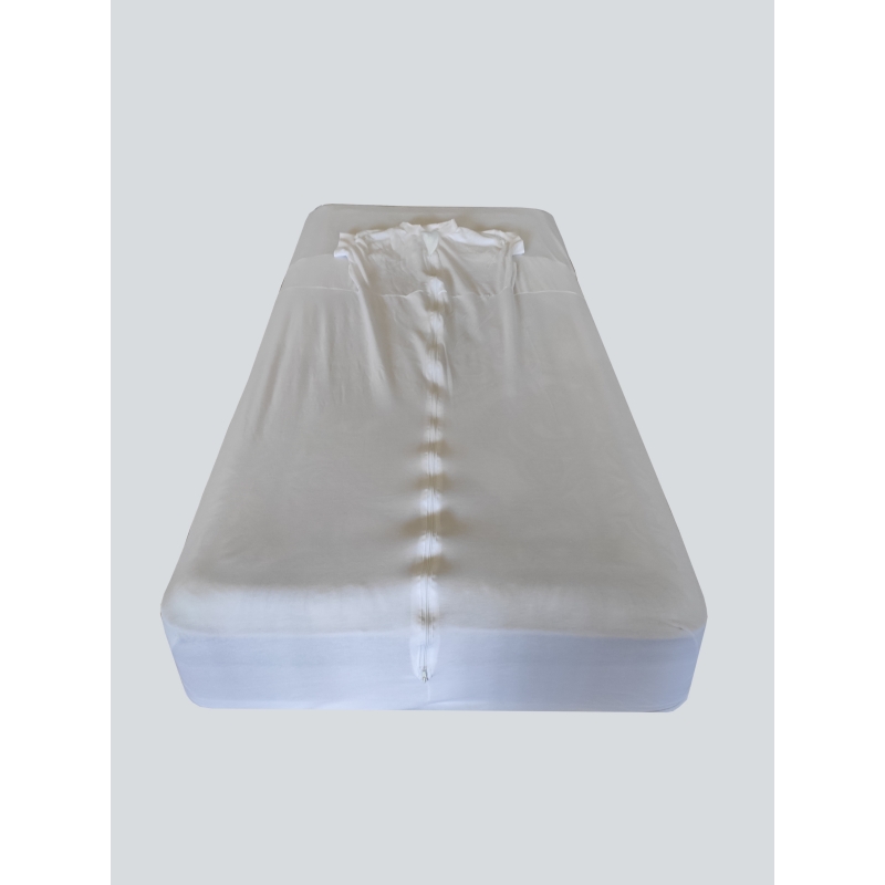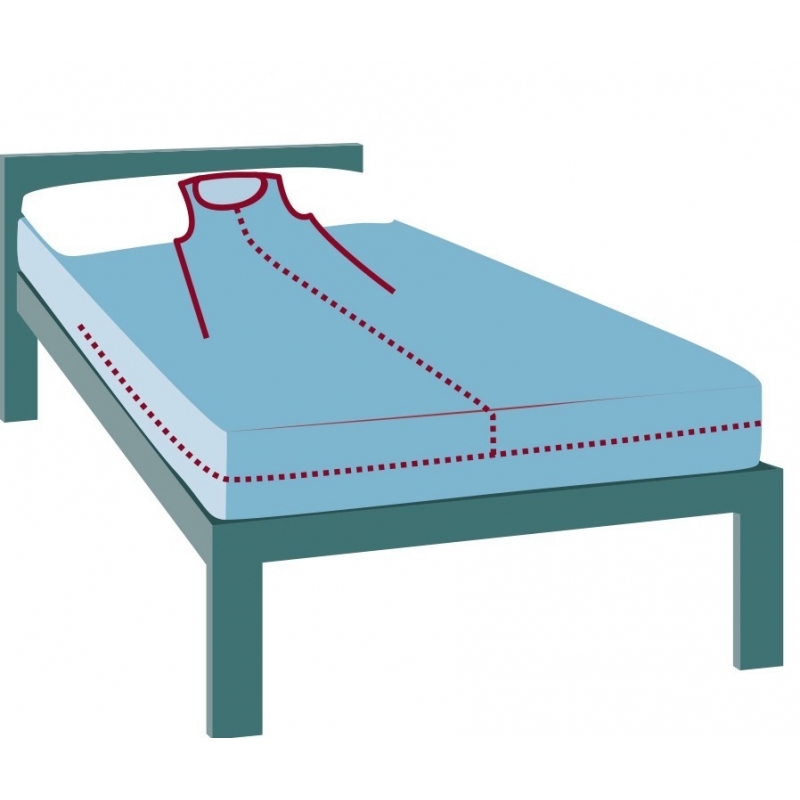 Sábana de sujeción que se sujeta al colchón impidiendo al paciente abandonar la cama o caerse de la misma. No dificulta el movimiento de las extremidades superiores ni inferiores, dando movilidad al paciente. Fabricado en tejido elástico y confortable. Disponible en manga corta, manga larga y sin mangas.