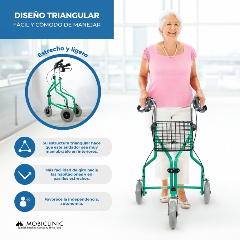 Este andador ortopédico para ancianos o personas mayores con tres ruedas está indicado para personas con problemas de movilidad, que están siguiendo un tratamiento o durante el proceso de rehabilitación, ya que les proporciona la estabilidad que necesitan durante sus desplazamientos y paseos.