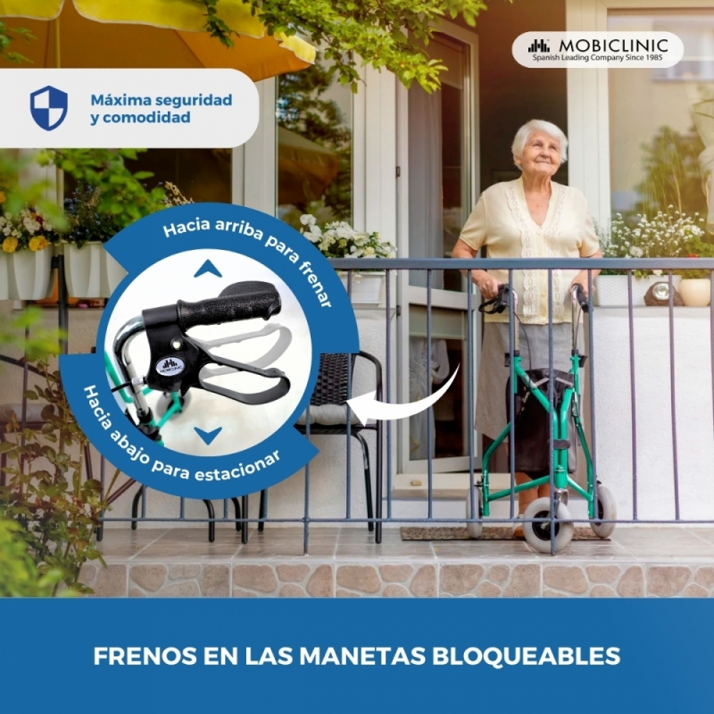 Este andador para ancianos dispone de puños ergonómicos para una mayorcomodidad que ayudan a distribuir y amortiguar el peso, además, incorpora unos frenos a las empuñaduras para frenar o bloquear el andador de una forma segura y natural.