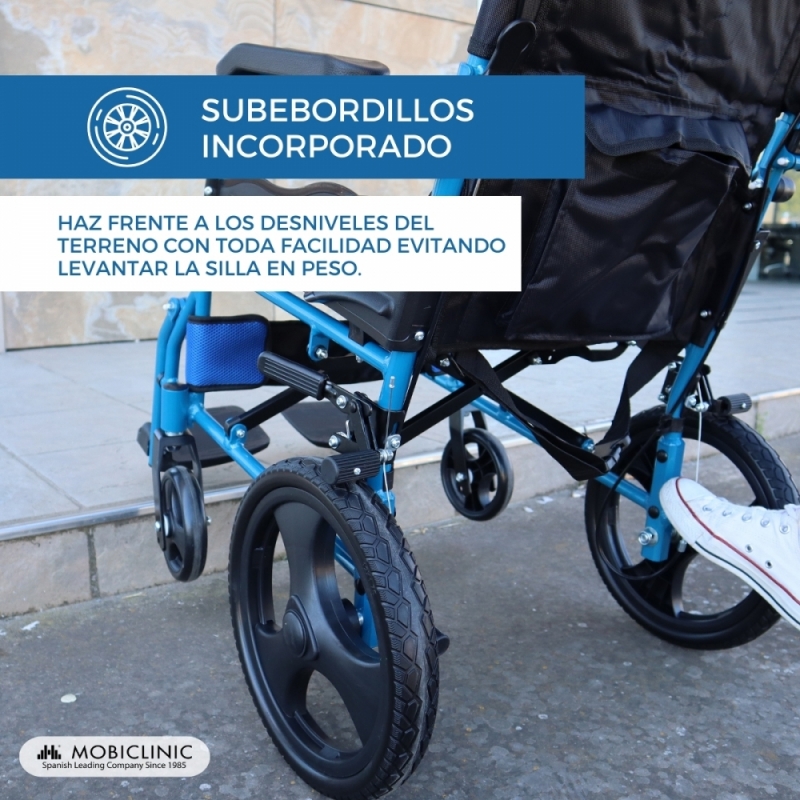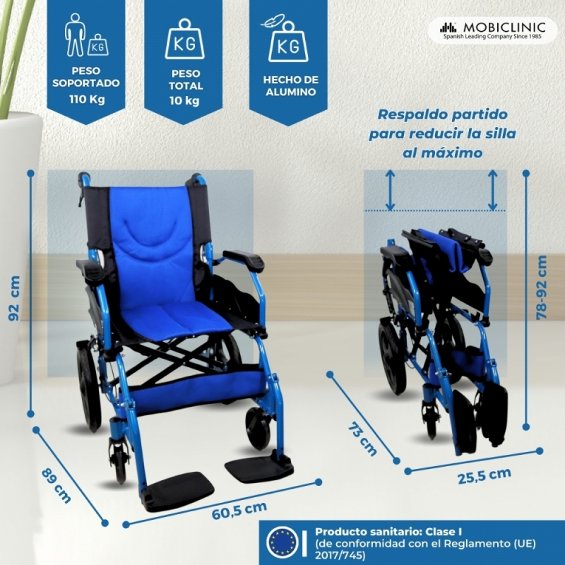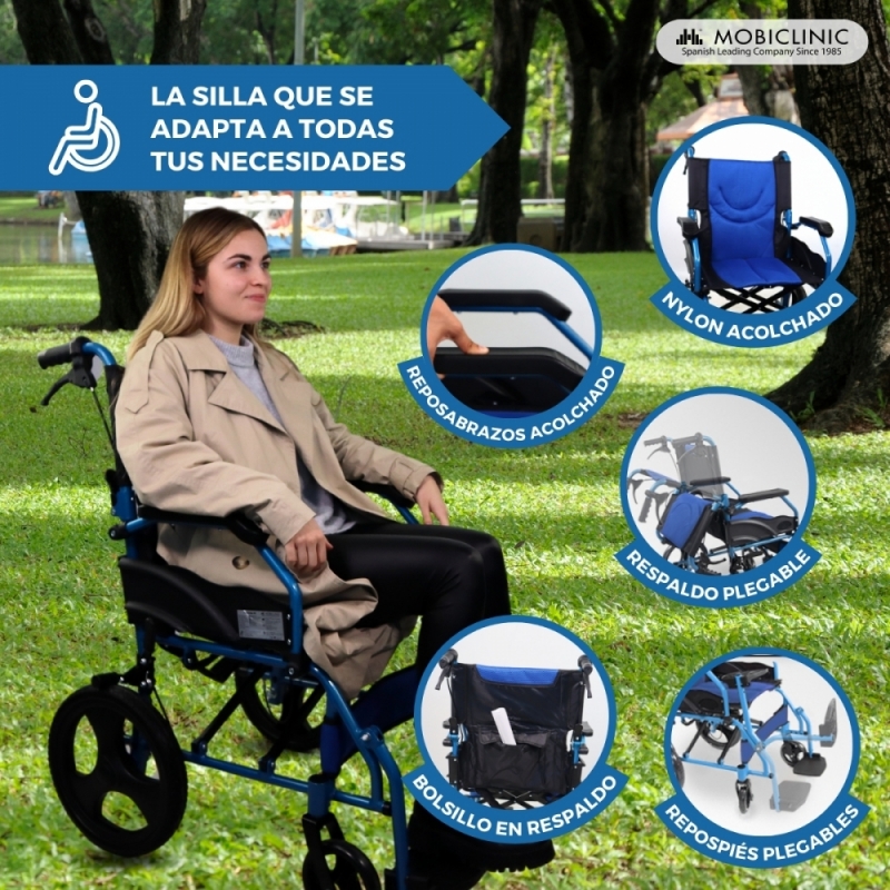 Silla de ruedas | Plegable | Aluminio | Frenos en manetas | Ancho asiento 46cm | Azul | Pirámide | Mobiclinic