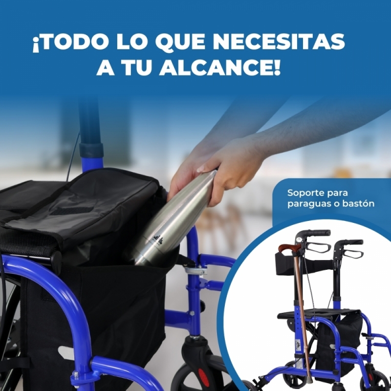 Este andador para mayores también dispone de una fantástica bolsa en la que podrás meter todas las pertenecías sin problema, de forma segura mientras camina.