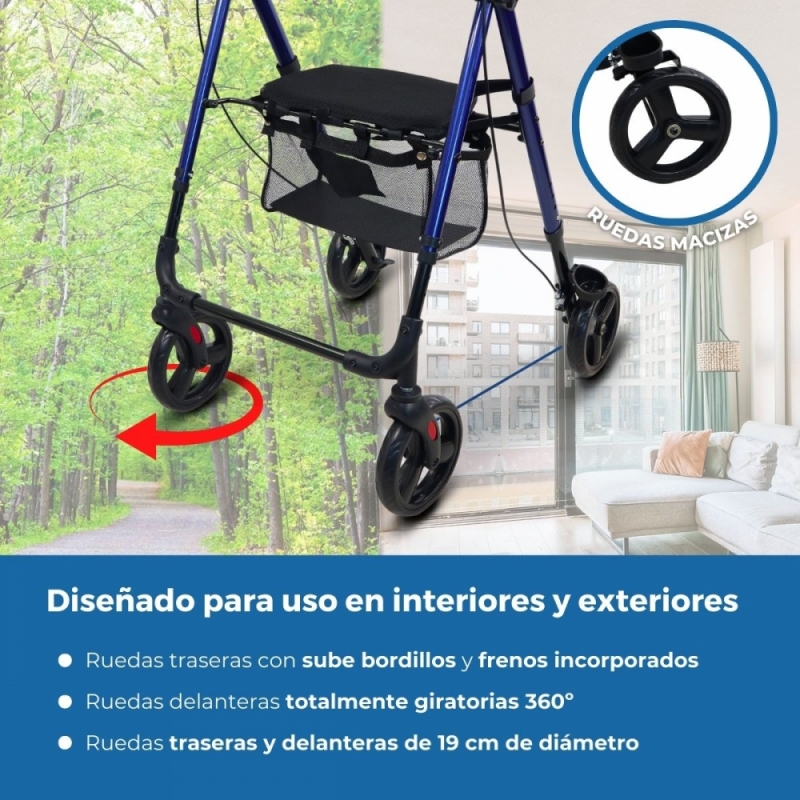 - Su seguridad, su fácil forma de frenar cuando el usuario lo necesite ayuda a que las personas con escasa movilidad se desplacen con absoluta autonomía gracias a sus ruedas con giro de 360º sin peligro.