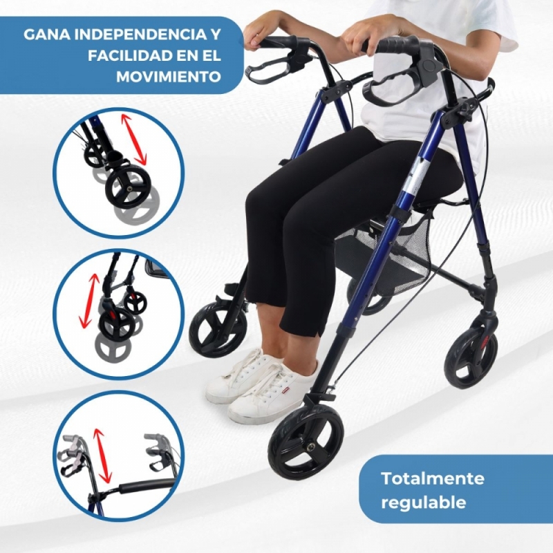 PROPORCIONA AUTONOMÍA: este andador para mayores y discapacitados les permitirá tener mayor autonomía con toda seguridad gracias a sus frenos por maneta y su amplia cesta, además de sus ruedas, que permiten un giro total de hasta 360º.