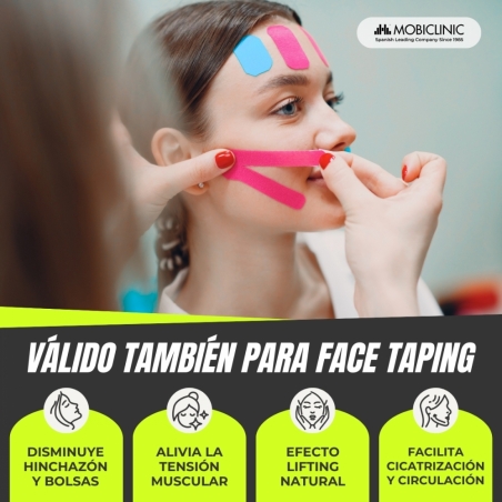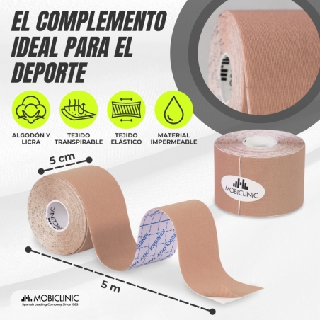 ELASTICIDAD: su composición a partir de fibras de algodón y elastano hace que las vendas kinesiológicas sean elásticas y amoldables al cuerpo, lo que garantiza la amplitud de los movimientos