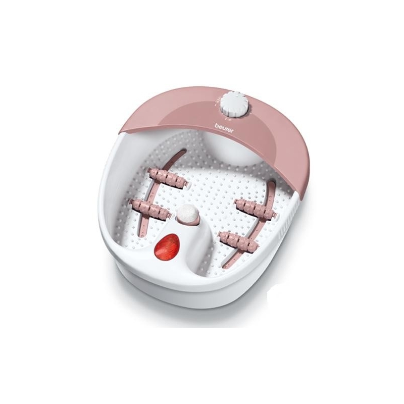 Baño de burbujas para pies con suave masaje vibratorio de las zonas reflexógenas del pie a través de accesorios de rodillos de masaje extraíbles. Ofrece la posibilidad de masaje en seco y agradables puntos de luz infrarroja. Accesorios para pedicura intercambiables. La bañera tiene plantillas de goma antideslizantes, protección contra salpicaduras y enrollamiento de cable.