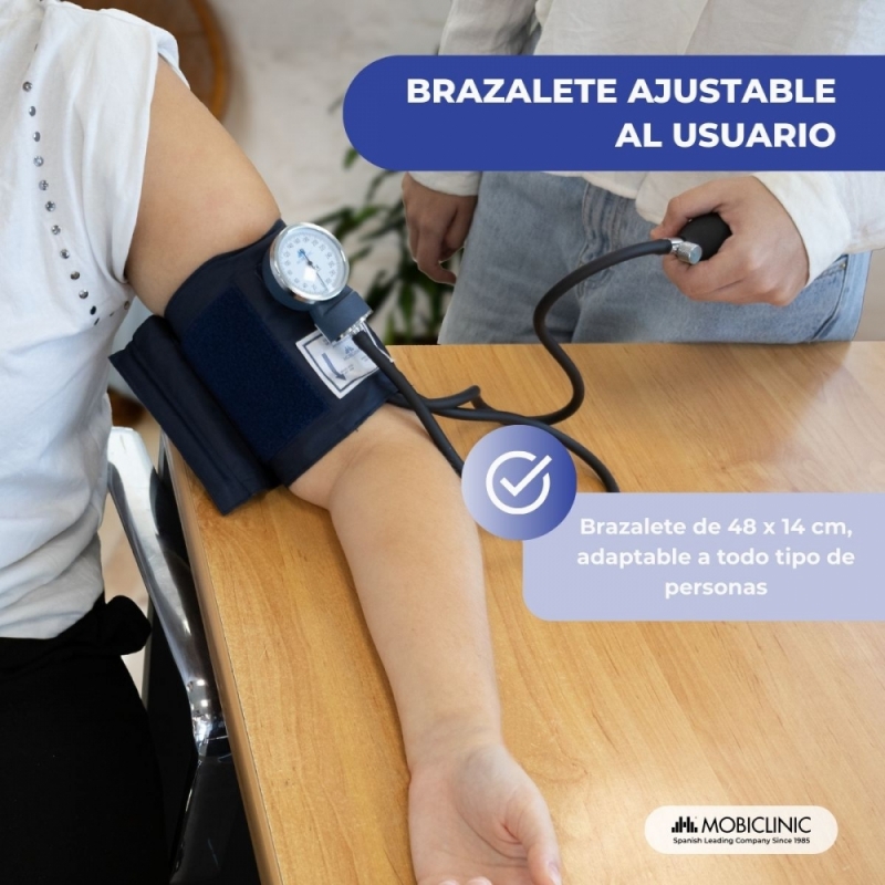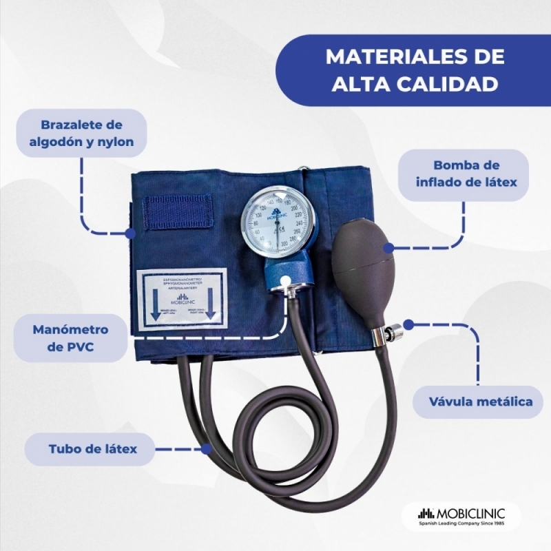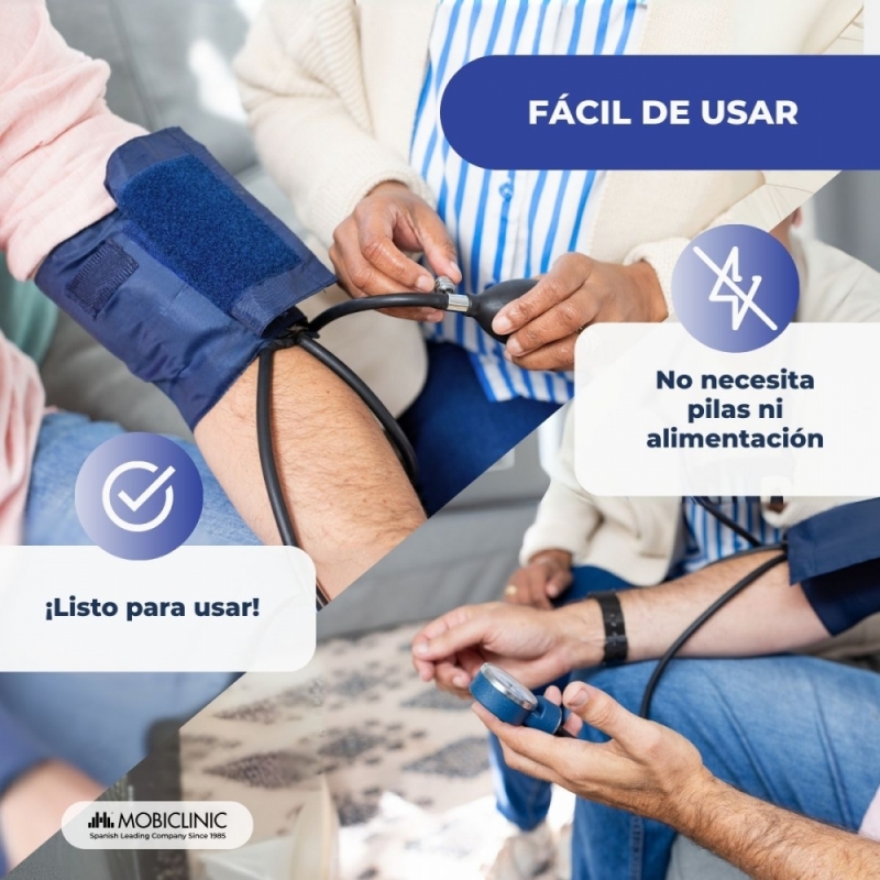 Tensiómetro aneroide | Tensión arterial | Dos salidas | Cómodo | Adaptable | Azul | Mobiclinic