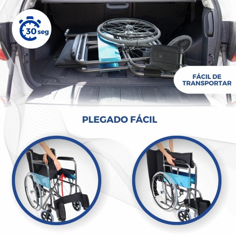 FÁCIL DE TRANSPORTAR: al ser una silla de ruedas plegable ofrece la posibilidad de transportarla cómodamente y de guardarla con facilidad