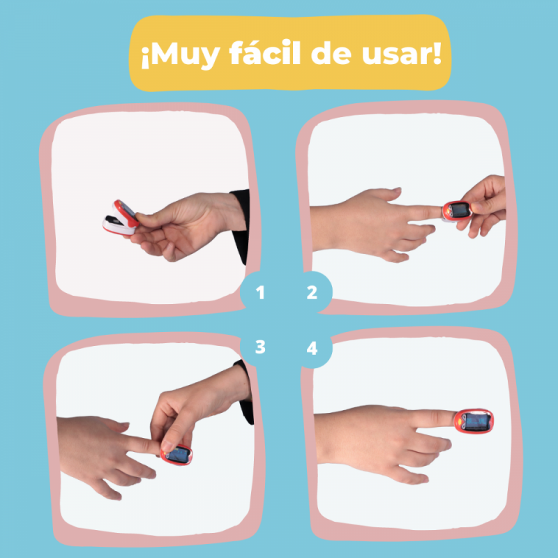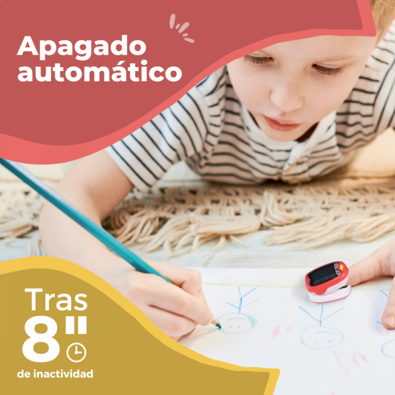 Este pulsioxímetro ha sido especialmente diseñado para que los más pequeños se sientan seguros y tranquilos y no rechacen el aparato, por eso está decorado con la forma de un simpático pájaro con llamativos colores como el rojo y el amarillo.