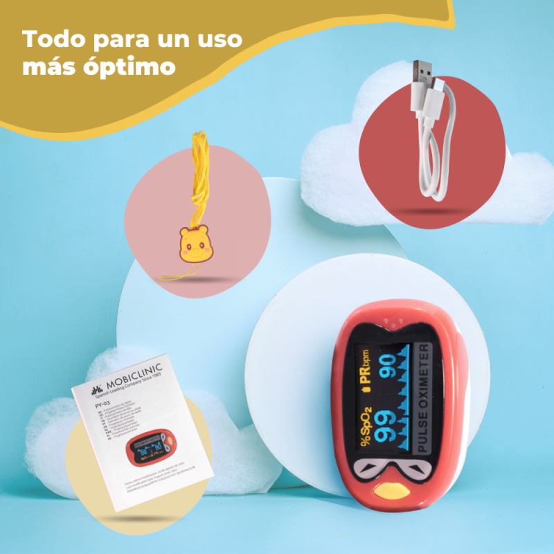 Pulsioxímetro para niños | Onda pletismográfica | Pantalla OLED | Diseño con forma de pájaro | Seguro y fiable | Mobiclinic