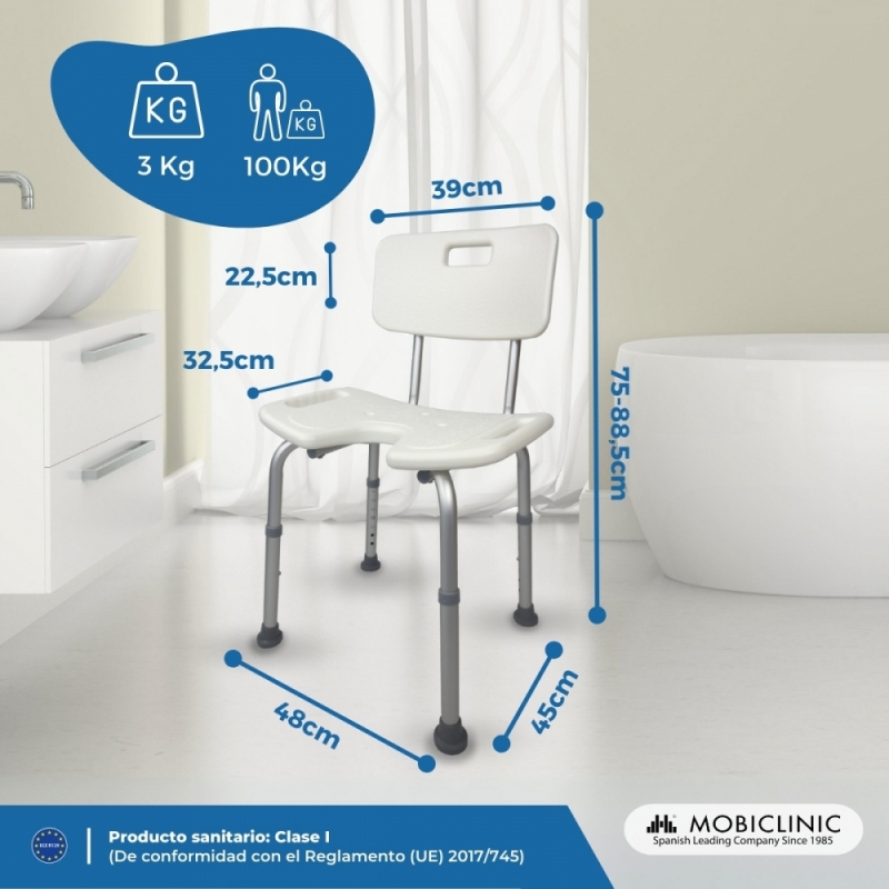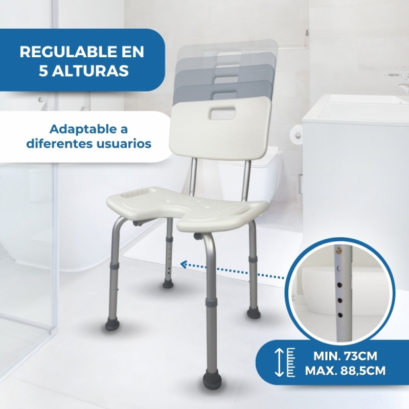 Silla de baño | Altura regulable | Respaldo | Asiento en U | Marisma | Mobiclinic