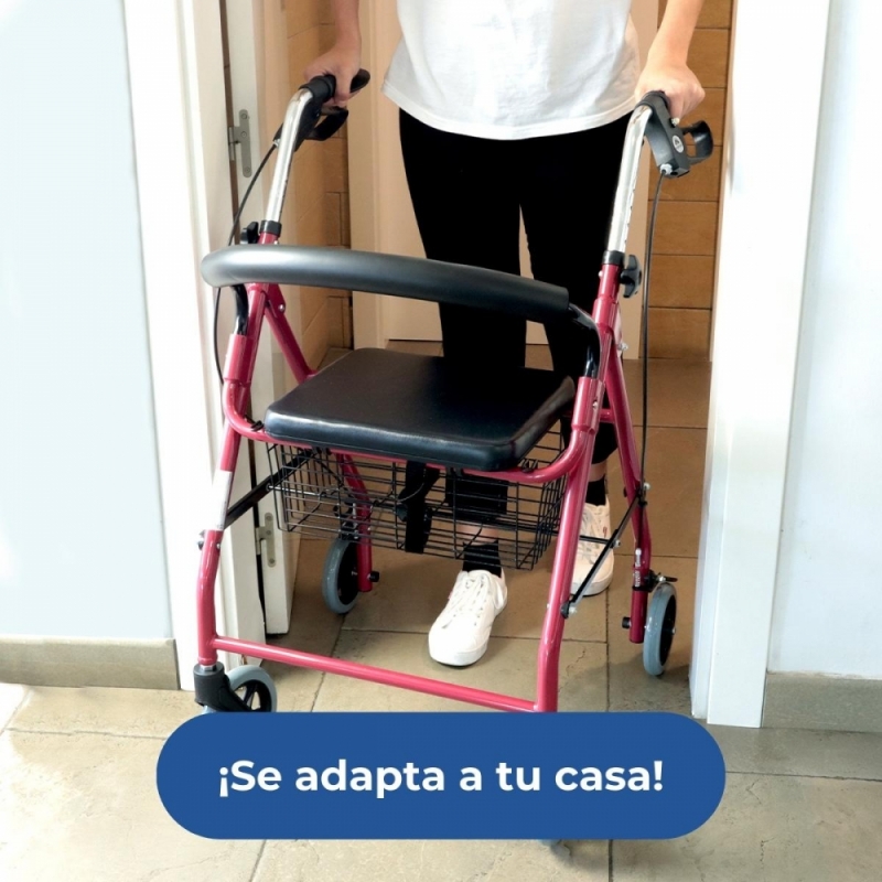 Andador | Aluminio | Plegable | Freno manetas | Asiento y respaldo | Cesta | Para ancianos | Frambuesa | Alhambra | Mobiclinic