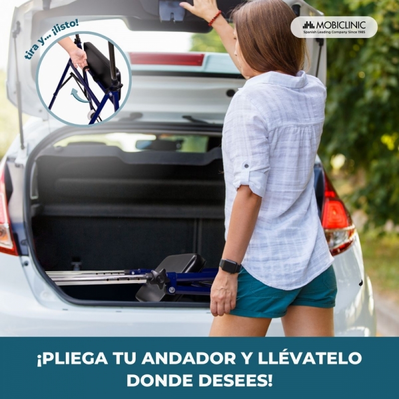 Además, al ser un andador plegable le resultará fácil de plegar gracias a su eje central. Su diseño en azul brillante le aporta a este andador para mayores la elegancia que siempre ha buscado.