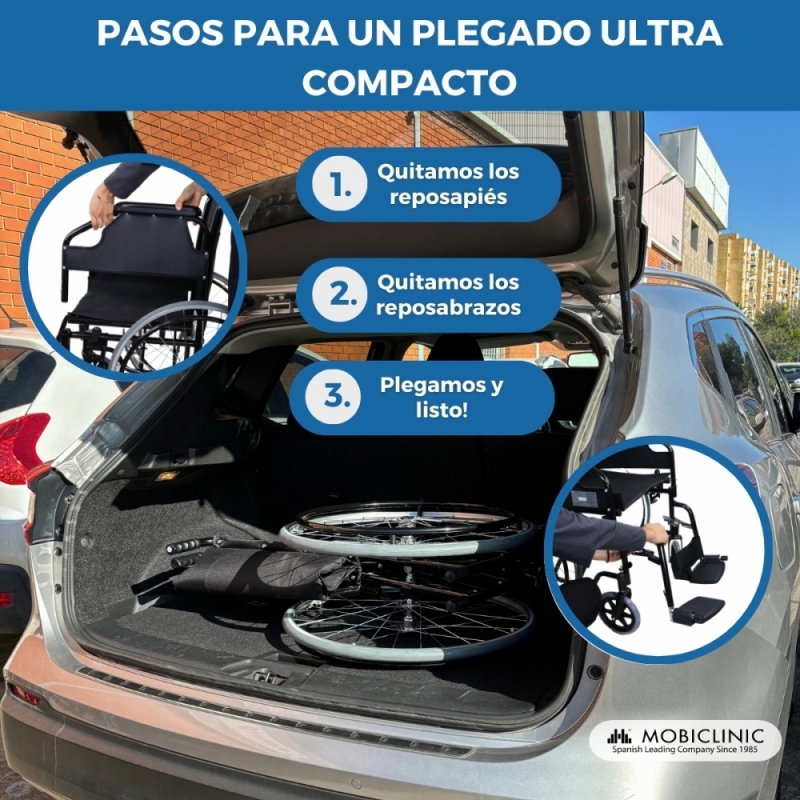 Además, al ser una silla de ruedas plegable, se puede transportar con facilidad en cualquier vehículo.