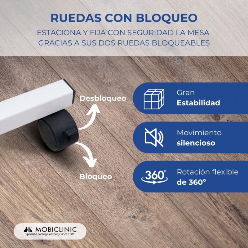 El sistema de frenos en las ruedas de la mesa auxiliar blanca permite bloquearlas parar asegurar su estabilidad y su fácil movilidad le harán decidirse por ella.