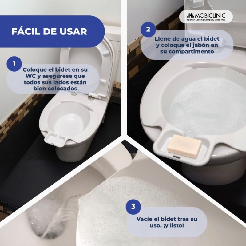 PORTÁTIL Y FUNCIONAL: Se coloca sobre el inodoro sin necesidad de instalación, baterías ni cables. Gracias a su peso y forma compacta, puede ser utilizado tanto en hospitales como en casa e incluso en viajes, ofreciendo comodidad y eficacia. Además, cuenta con una práctica zona incorporada para colocar el jabón
