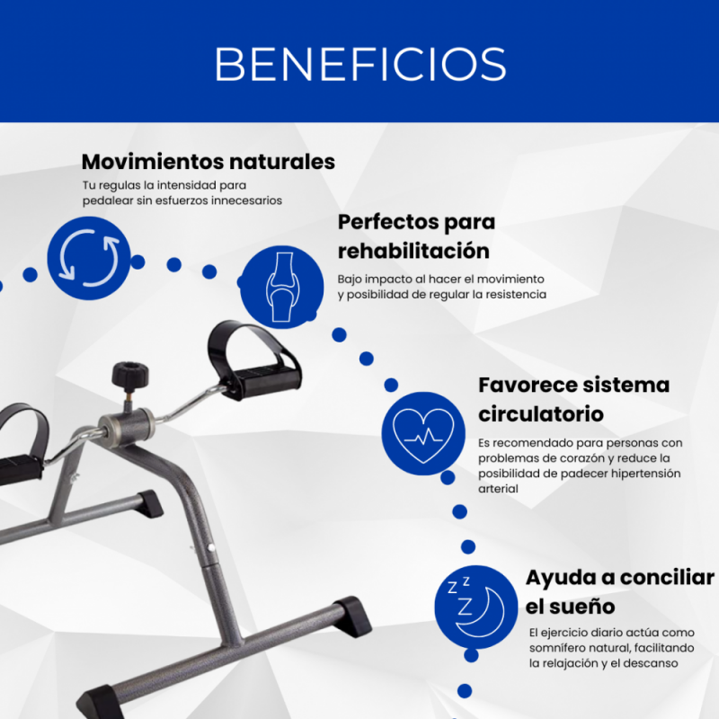 IDEAL PARA: este ejercitador de piernas es ideal para personas que necesitan realizar una actividad física suave, porque ayuda a mejorar su movilidad articular y mantiene el tono físico sin salir de casa.