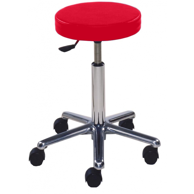 Ofrecemos a los profesionales el taburete sin respaldo con altura regulable a gas, con asiento tapizado y disponibilidad de varios colores.