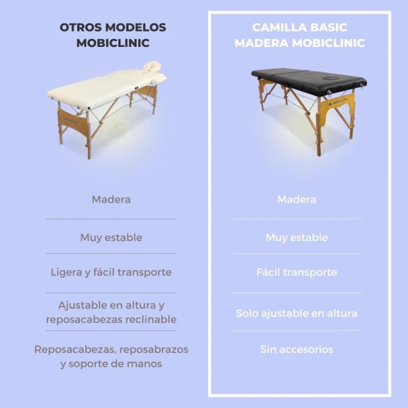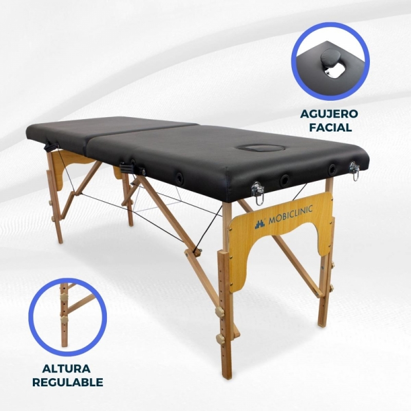 Camilla plegable | Madera | Portátil | 180x60 cm | Masaje | Negra | CM-01 BASIC | Mobiclinic