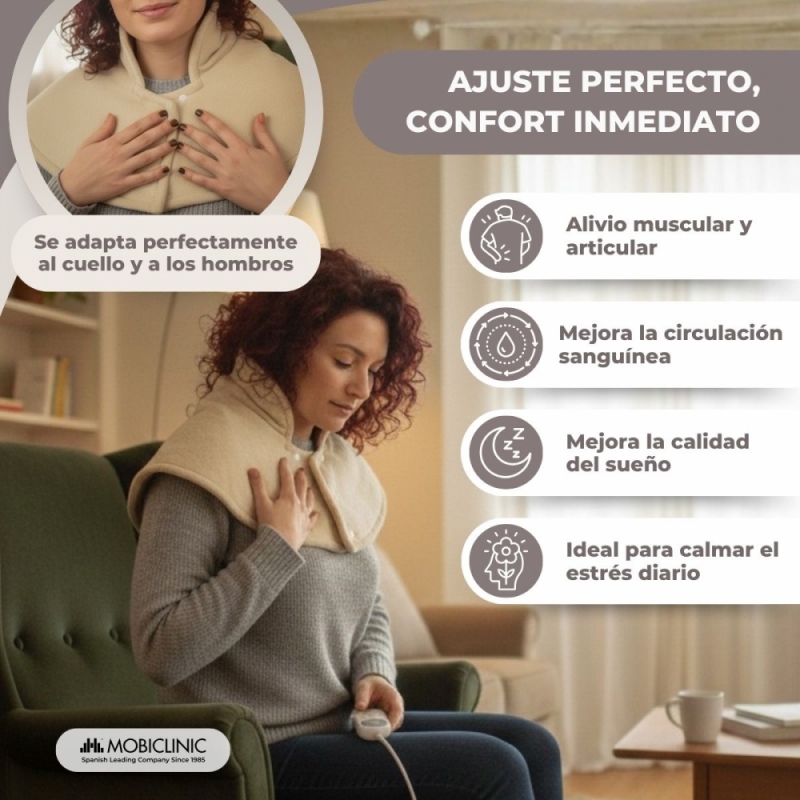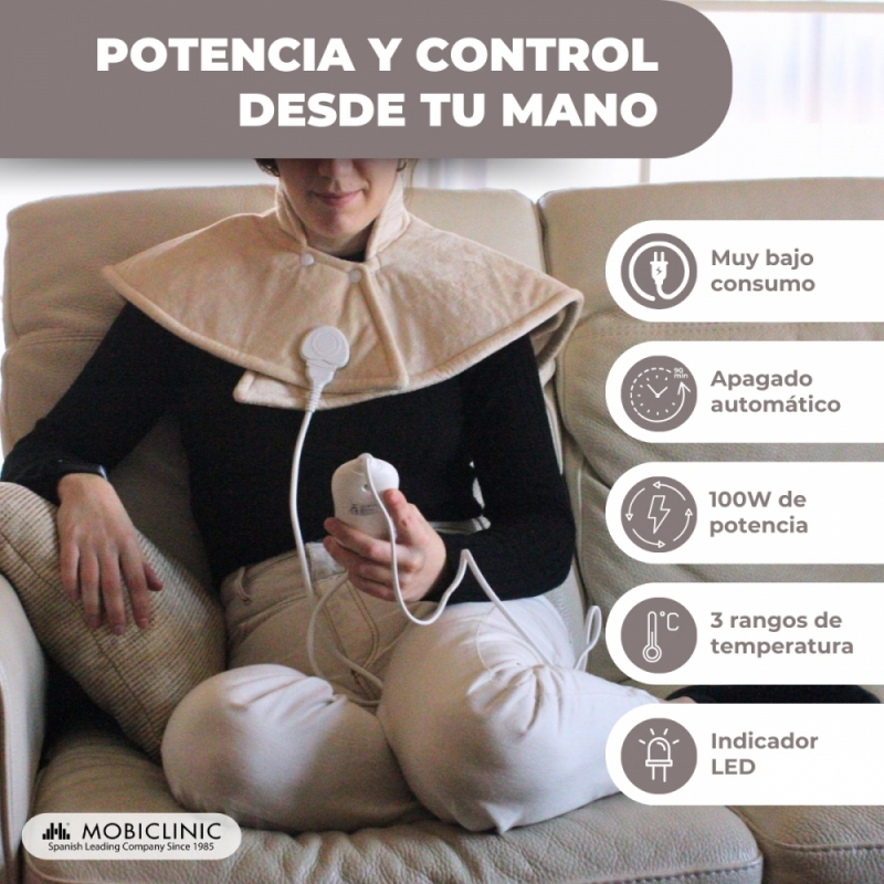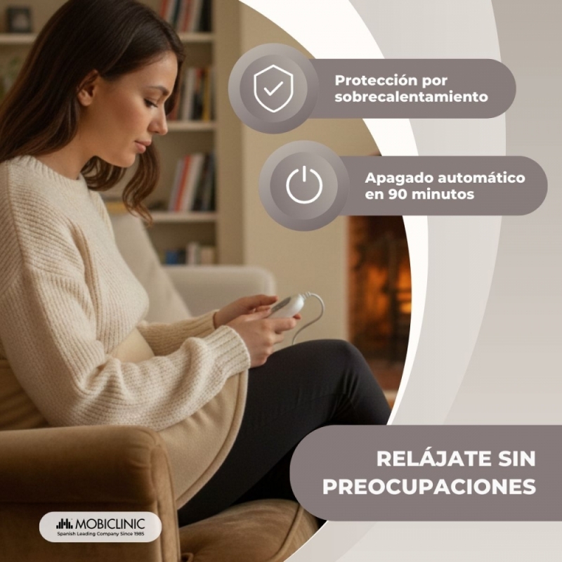 El calor es proporcionado por unas termo-resistencias internas provistas de un dispositivo de seguridad que regula automáticamente la temperatura conectando y desconectando la corriente eléctrica a intervalos regulares modulados mediante el mando, al igual que una manta eléctrica cervical, por lo que ¡no tendrás que preocuparte en absoluto por quedarte dormido mientras la usas. Por otro lado, cuenta con tres niveles de temperatura.