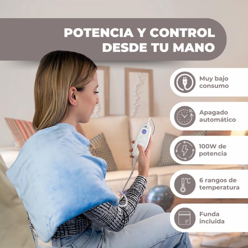 Te ofrecemos una almohadilla eléctrica de 40x30 cm., inteligente y térmica que te proporcionará calor y bienestar para tu cuerpo.