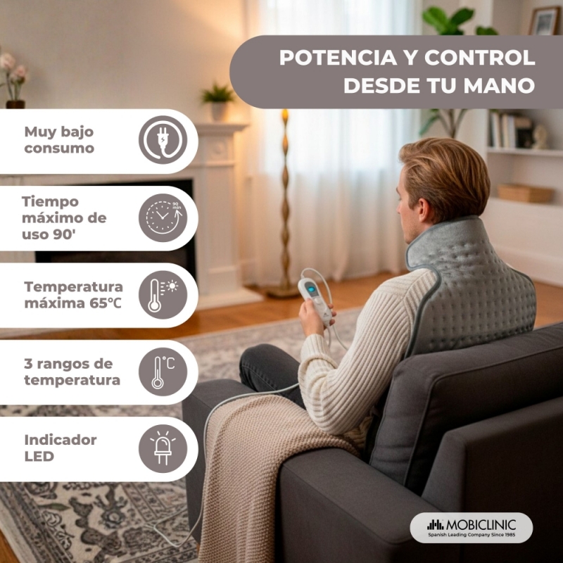Te ofrecemos una almohadilla eléctrica dorsal y cervical para de 62x43 cm., inteligente y térmica que te proporcionará calor a tu cuerpo.