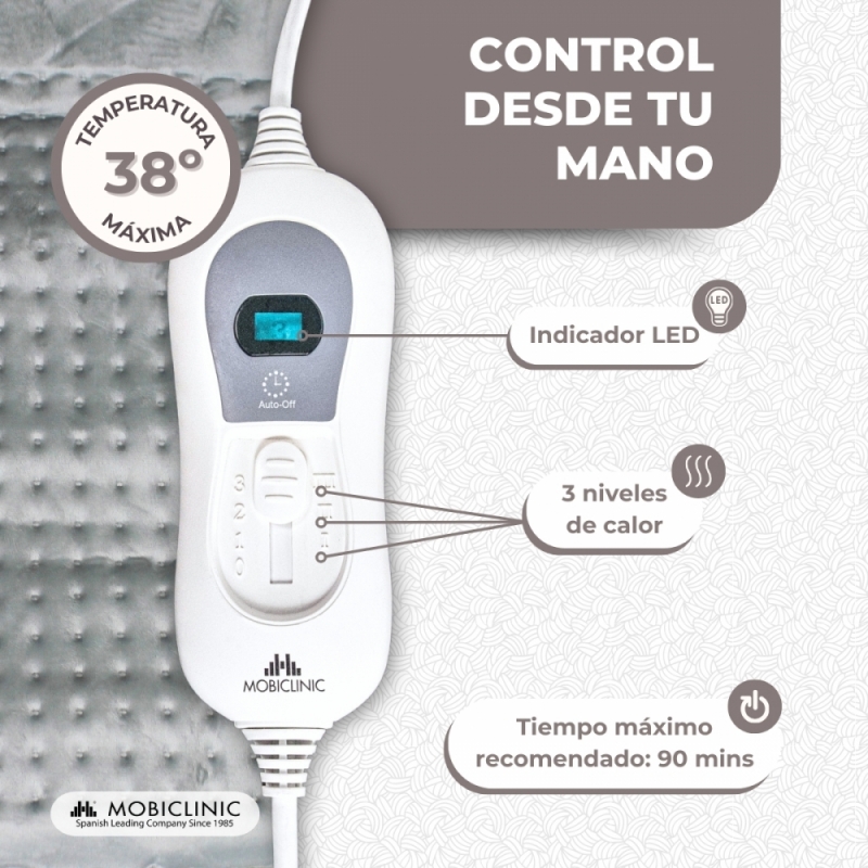 APAGADO AUTOMÁTICO: Esta almohadilla eléctrica cuenta con un apagado automático como sistema de seguridad. Su autoapagado funcionará pasados 90 minutos del encendido. Está diseñada para ofrecerle esa tranquilidad que su descanso requiere