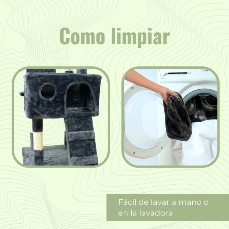 - Rascador con casa grande para dormir y jugar: Dos refugios con entrada redonda conectados por ramplas para que tu gato pueda disfrutar tanto del juego como del relax.