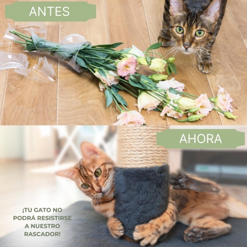 ALIVIO: El rascador ayudará a que nuestro gato no libere su naturaleza felina contra nuestro sofá u otros bienes causando destrozos. Es un objeto que cumple la función de desestresante para ellos. La cuerda de sisal hace que las uñas se puedan clavar sin problema ni ninguna rotura.