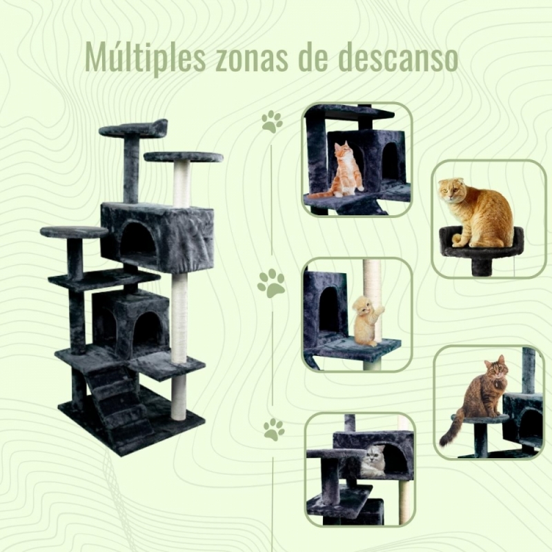 Estos juguetes para gatos son irresistibles. En ellos tu gato se estirará, pulirá sus uñas y hará todo tipo de movimientos que le divertirán. También podrá descansar tumbado cómodamente sobre las superficies con suave acolchado y, a la vez, disfrutar de las mejores vistas de la casa. Cuando le apetezca esconderse, retirarse o descansar, podrá hacerlo dentro del agradable refugio.