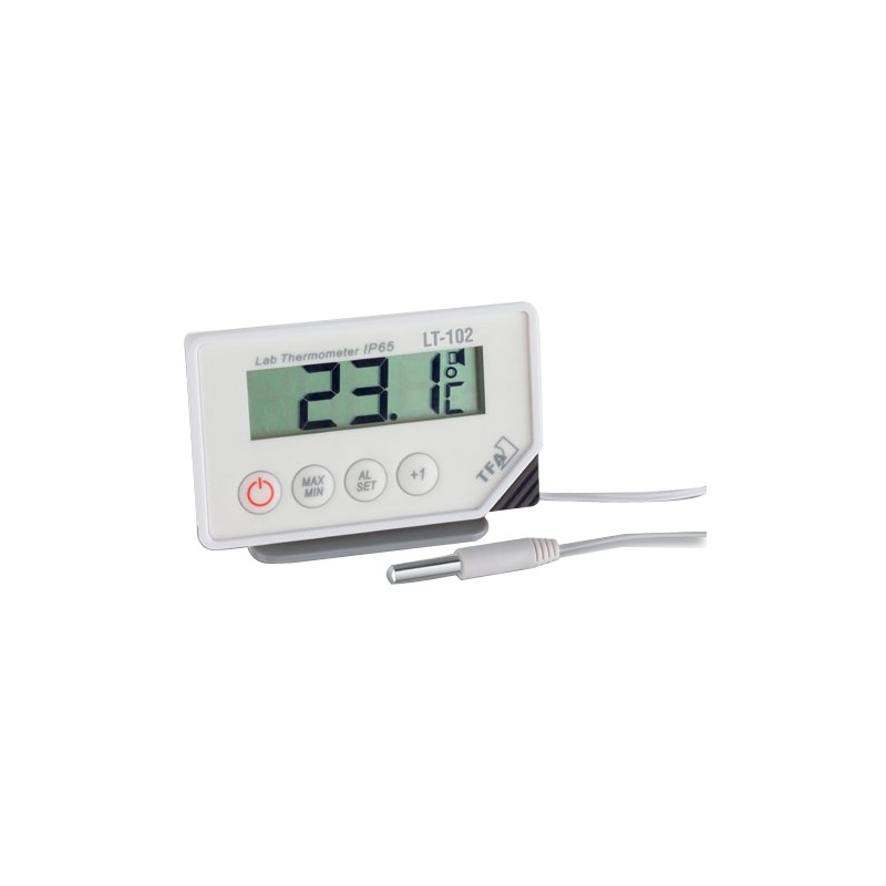 Este termómetro digital de bolsillo TFA cuenta con una sonda fija de inmersión de acero inoxidable y con cable de 1 metro. Está especialmente indicado para uso en neveras y congeladores, ya que su rango de medición abarca desde los -50º hasta los 70º.