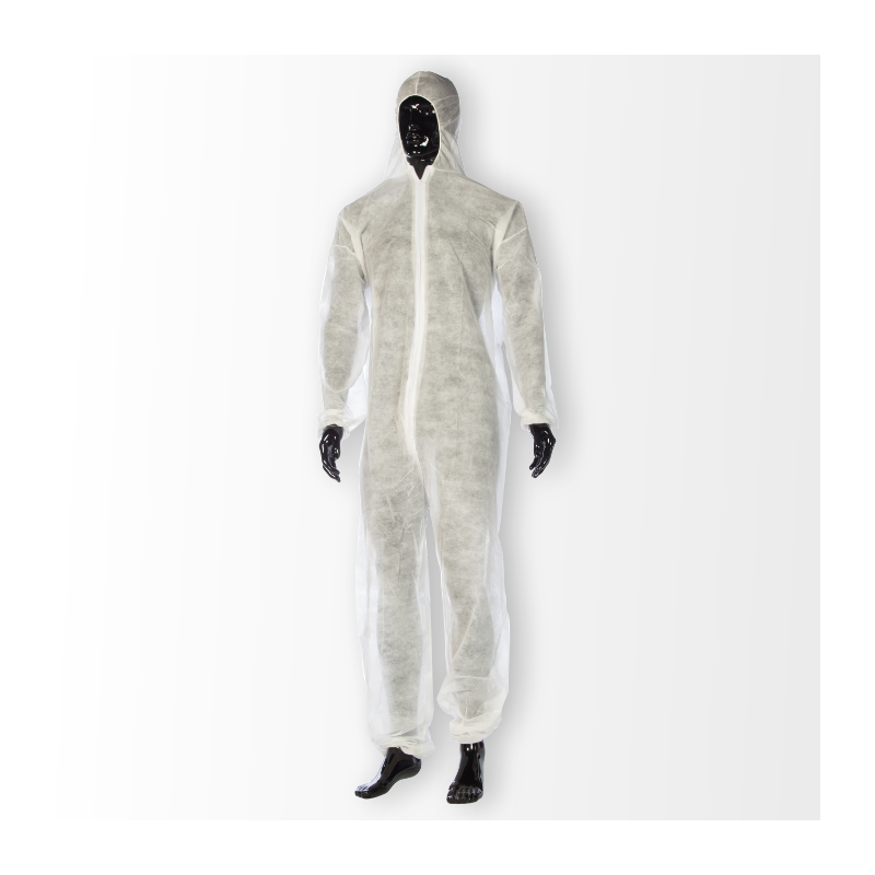 Mono de Polipropileno con capucha, ofrece protección contra suciedades en zonas sin riesgo laboral. Elástico en muñecas y tobillos para una mejor adaptabilidad. Se usa en labores de mantenimiento.