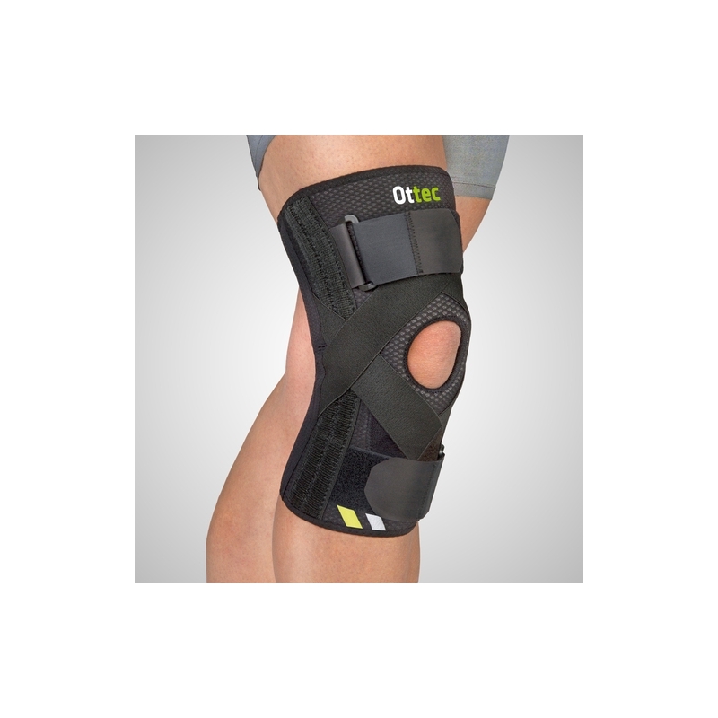 Cuatro bandas elásticas ajustables en forma romboide para mejor estabilizacion ligamentosa.