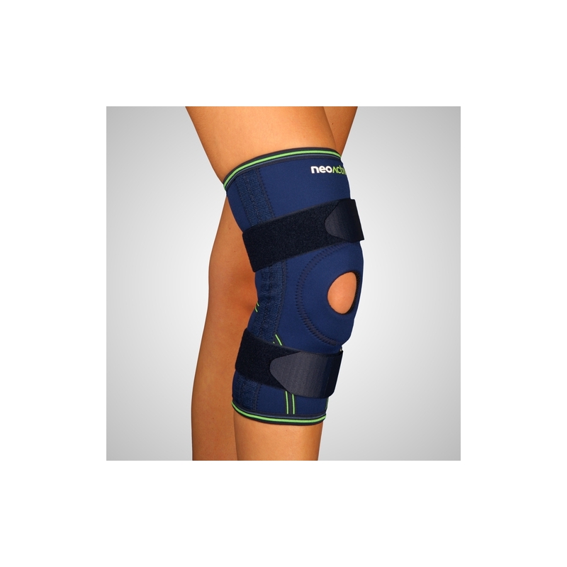 Testado por el Institut Fresenius Chemische und Biologische Laboratorien: Según criterios del International Contact Dermatitis Research Group el neopreno médico/sanitario utilizado en NeoActiv consigue excelentes resultados, incluso en aquellas personas que tienen piel muy sensible, en los que no provoca ninguna reacción cutánea. Ortesis de rodilla confeccionada con neopreno de 3,5 mm con refuerzos flexibles laterales y dos anchas cinchas de velcro ajustables y removibles.