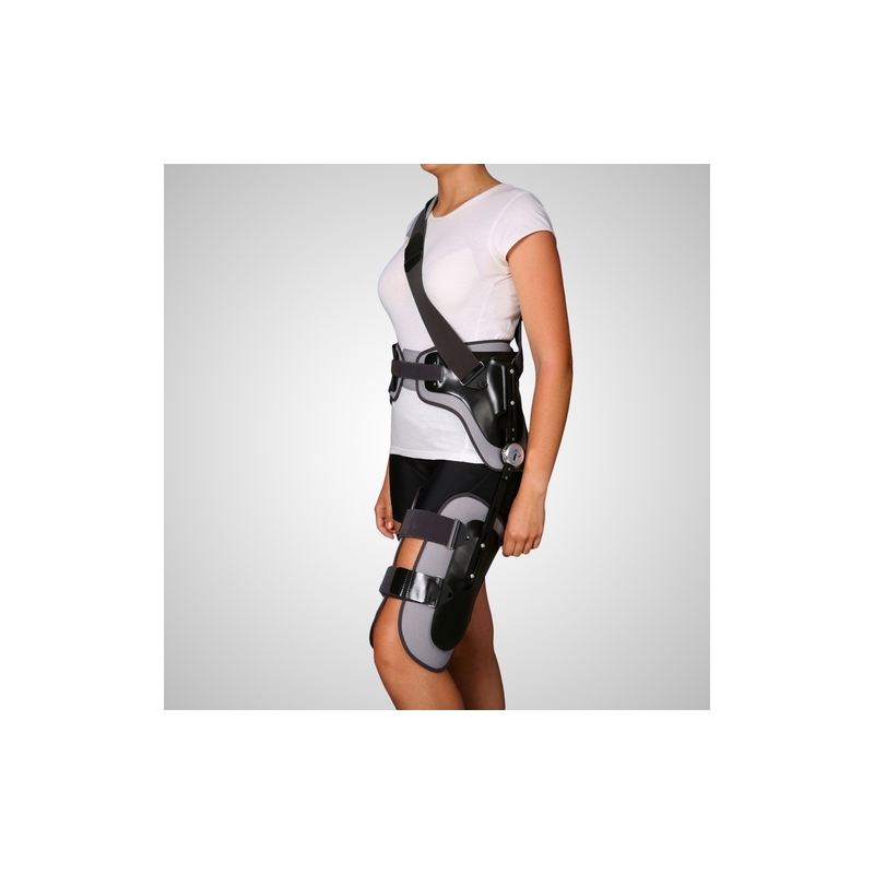 CARACTERÍSTICAS: órtesis estabilizadora de cadera modular con banda pélvica bivalva con ajuste deslizante posterior y muslera orientable y ajustable mediante velcro.