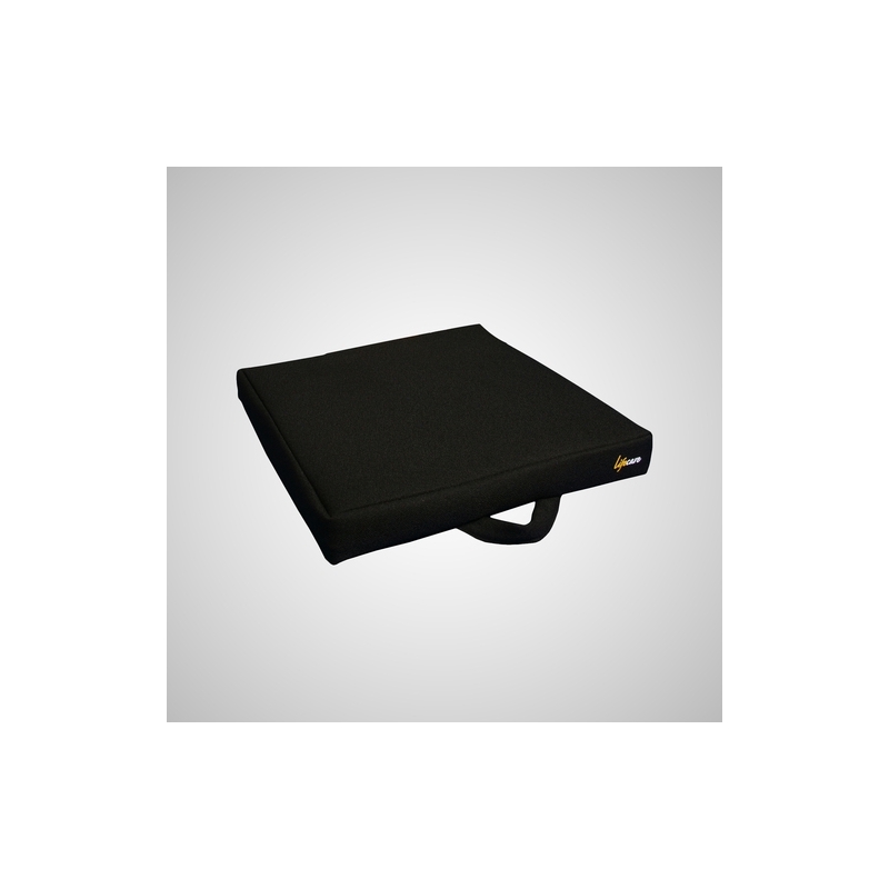 Funda exterior con asa para cojín antiescara lavable, antideslizante y con cierta resistencia al fuego. No desliza sobre el asiento. Se adapta con facilidad a las sillas de ruedas del mercado. Envasado en caja con asa para facilitar su transporte y almacenamiento. Perfil cuadrado.