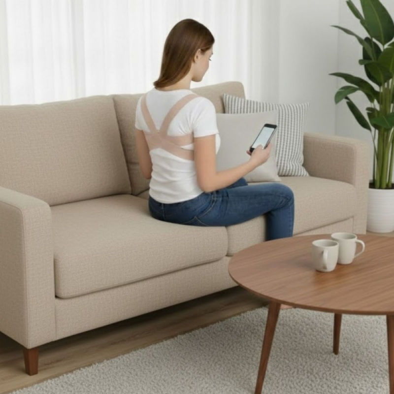 BENEFICIOS: Corrección postural de una actitud cifótica de la espalda (dorso curvo o "espalda cargada"). Recordatorio de la postura correcta. Retropulsión de la columna dorsal mediante tracción gradual.
