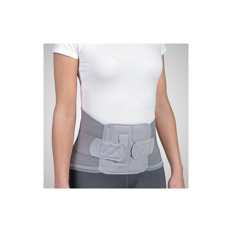 SUJECIÓN: Fácil regulación y colocación con ajuste y colocación mediante micro-velcro. Dispone de bandas elásticas laterales para graduar la descarga y sujeción sacrolumbar. Incorpora cuatro flejes de acero conformables, dos amplias trabillas para facilitar la colocación e incluye almohadilla lumbar.