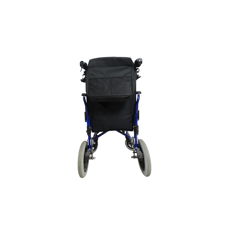 Bolso para silla de ruedas que dispone de una cinta para llevar en el hombro. Ajustable con 2 cintas con velcro. 3 bolsillos en la cara principal del bolso, 1 bolsillo con cremallera y 2 bolsillos en el reverso del bolso de rejilla.