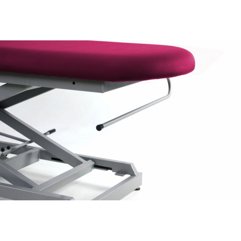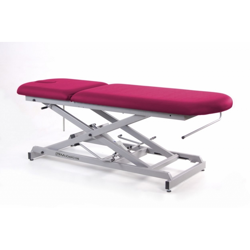 Camilla de reconocimiento hidráulica de 2 secciones con subida recta sin desplazamiento lateral, portarrollos y tapón facial.