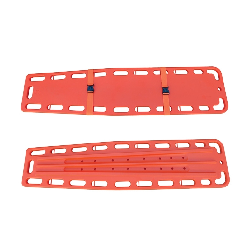 Tablero espinal fabricado en una única pieza de HDPE (polietileno de alta densidad). Estructura firme que facilita el transporte. Permite el uso de Rayos-X. Dos cinturones garantizan que el proceso de transporte sea seguro. Gran resistencia a los golpes y a la corrosión. Flotante.