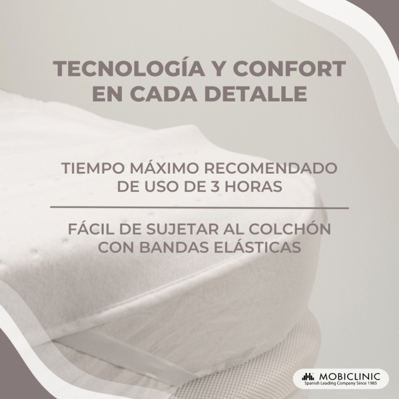 Permite mantener una temperatura corporal constante, pues está diseñado para acostarse sobre él mismo. Además, ofrece la máxima comodidad al ser adaptable al colchón y un suave calor ascendente mediante un consumo muy reducido de energía.