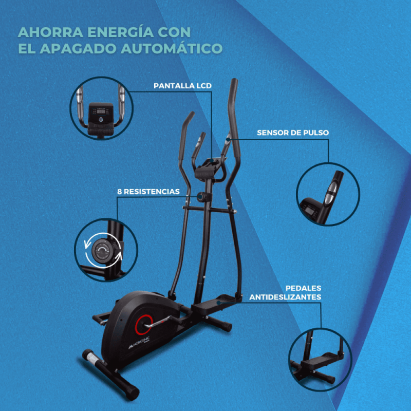 Bicicleta elíptica | 8 resistencias | Pantalla LCD | Manillar ergonómico | Antideslizante | Hasta 100 kg | ATLAS | Mobiclinic