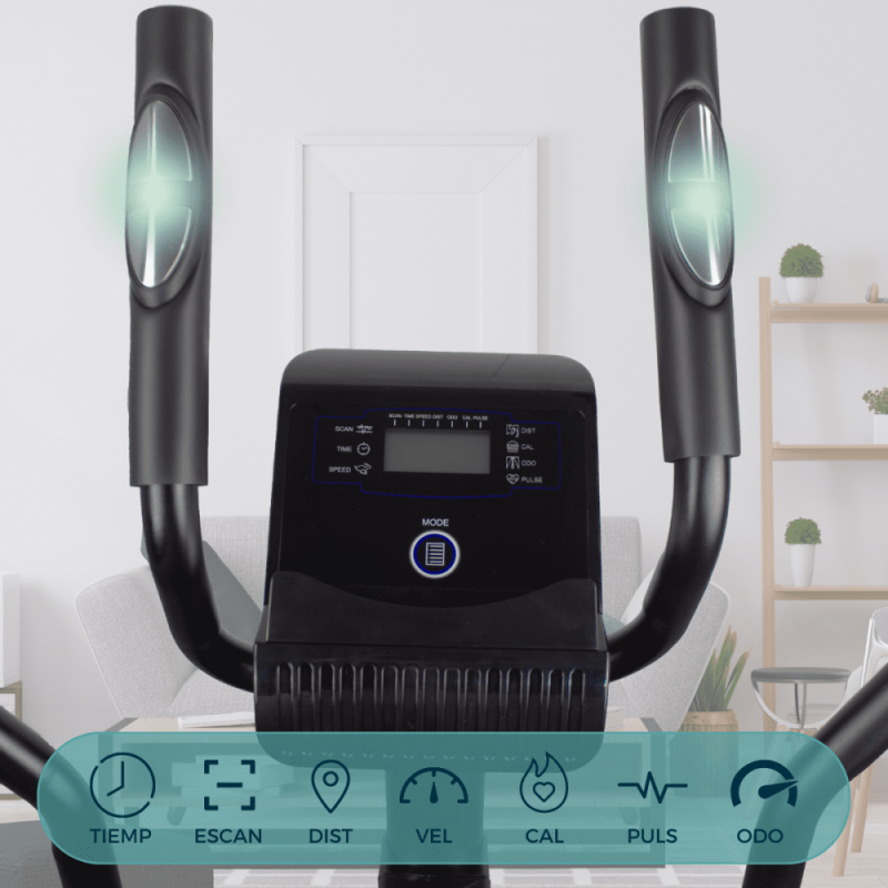 - Sigue eficazmente el proceso de la actividad con el monitor digital de fácil lectura: escaneo, velocidad, tiempo, calor, distancia, pulso