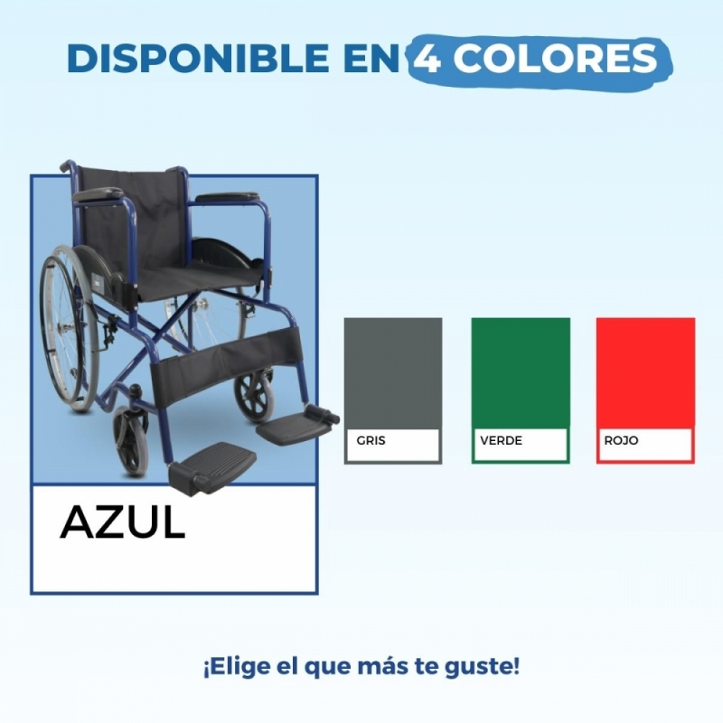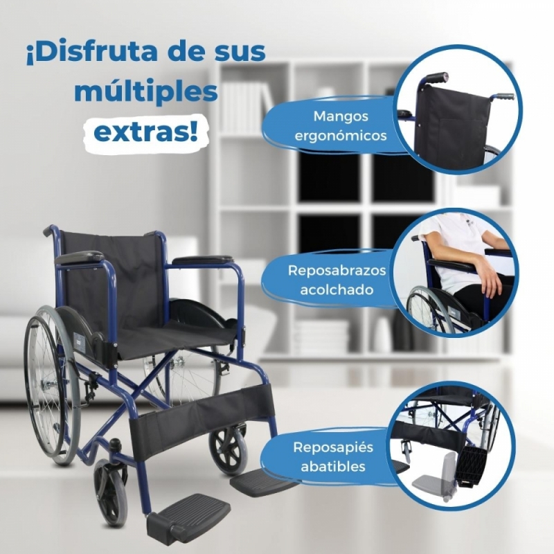 Silla de ruedas | Plegable | Rueda grande | Resistente | Reposabrazos y reposapiés fijos | Azul | Alcazaba | Mobiclinic