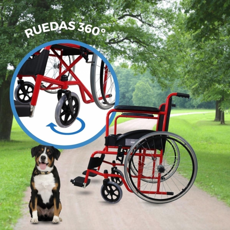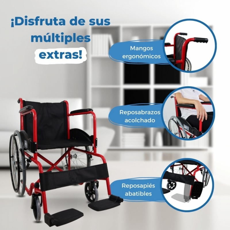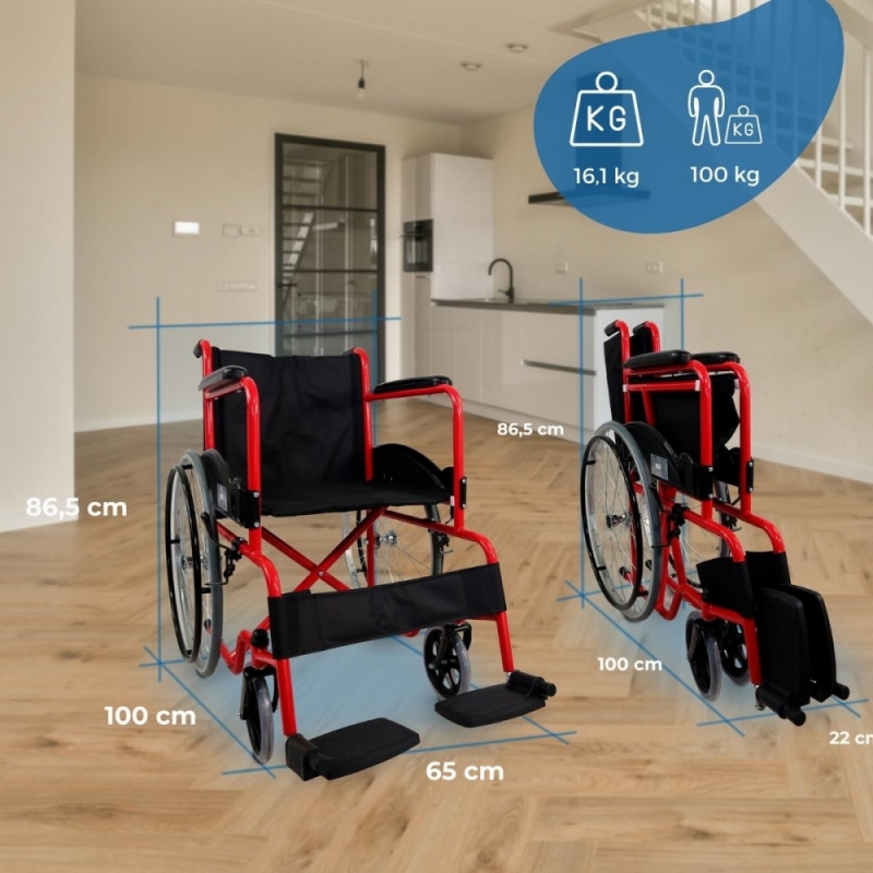 Silla de ruedas | Plegable | Rueda grande | Resistente | Reposabrazos y reposapiés fijos | Rojo | Alcazaba | Mobiclinic