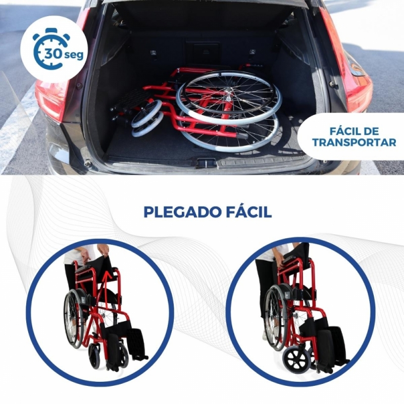 PLEGABLE: silla de ruedas plegable fácil de guardar. Se pliega para facilitar el transporte