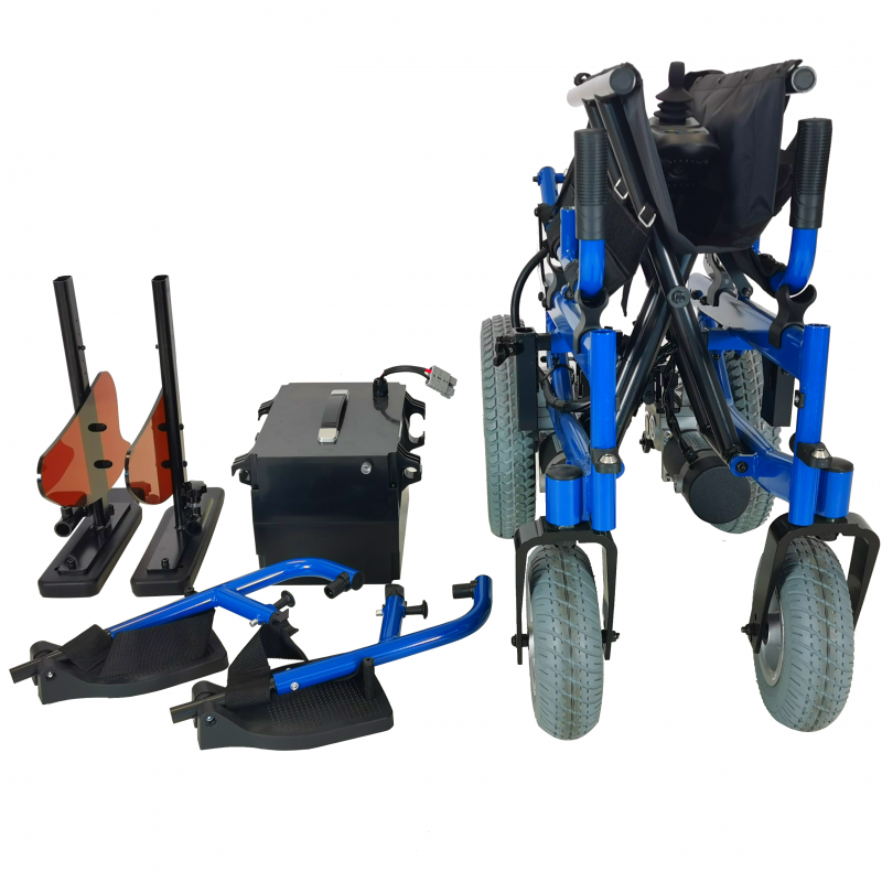 DESMONTABLE Y TRANSPORTABLE: el chasis de aluminio, las baterías, los reposabrazos y los reposapiés son extraíbles, lo que facilitan el desmontaje y transporte de esta silla. De esta forma, el traslado de la silla Emblema resulta muy sencillo.