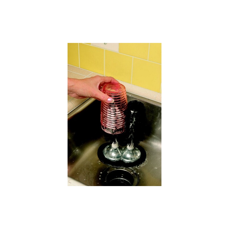 Este cepillo de limpieza puede ser fijado mediante ventosa a su fregadero y le permite lavar vasos y tazones con una sola mano.